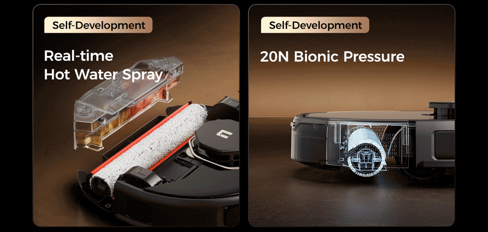 It covers more area in a single pass, efficient for larger spaces. This design is better for deep cleaning wet and dry messes simultaneously. Moreover, it has real-time self-cleaning with dirty water separation, elevating the duration of mopping sessions (reduce the frequency of returning station).