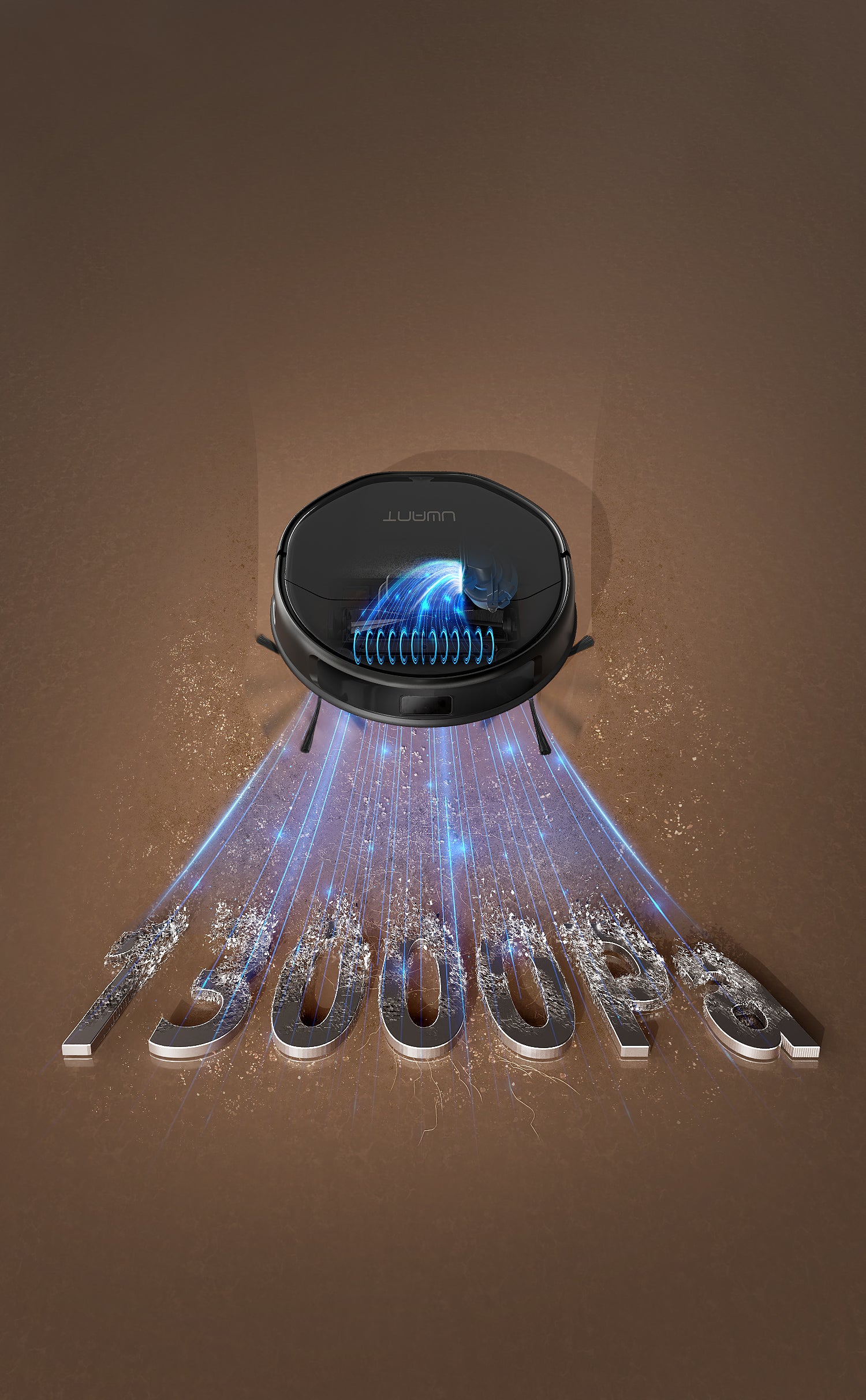 The U300 powerful 13,000 Pa suction effortlessly lifts dust, debris, and pet hair from floors and carpets for a consistently thorough clean in your home.