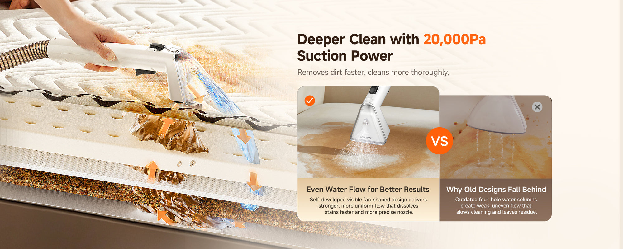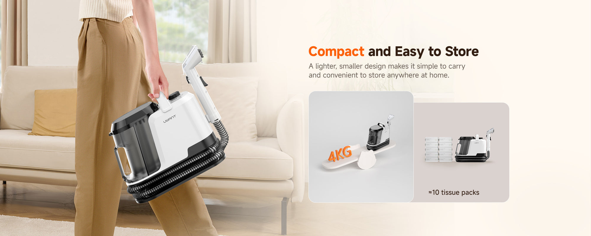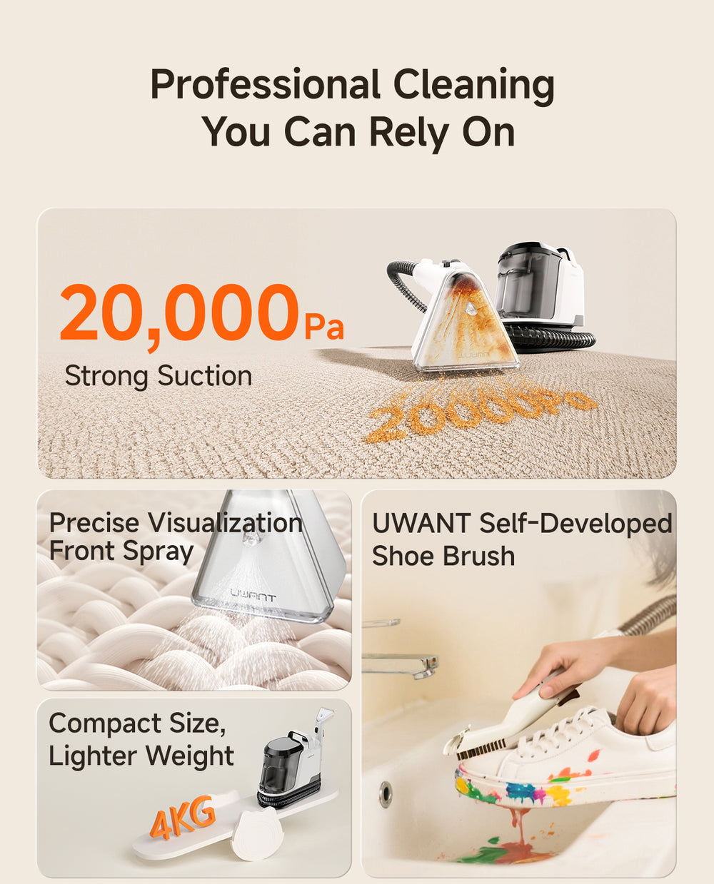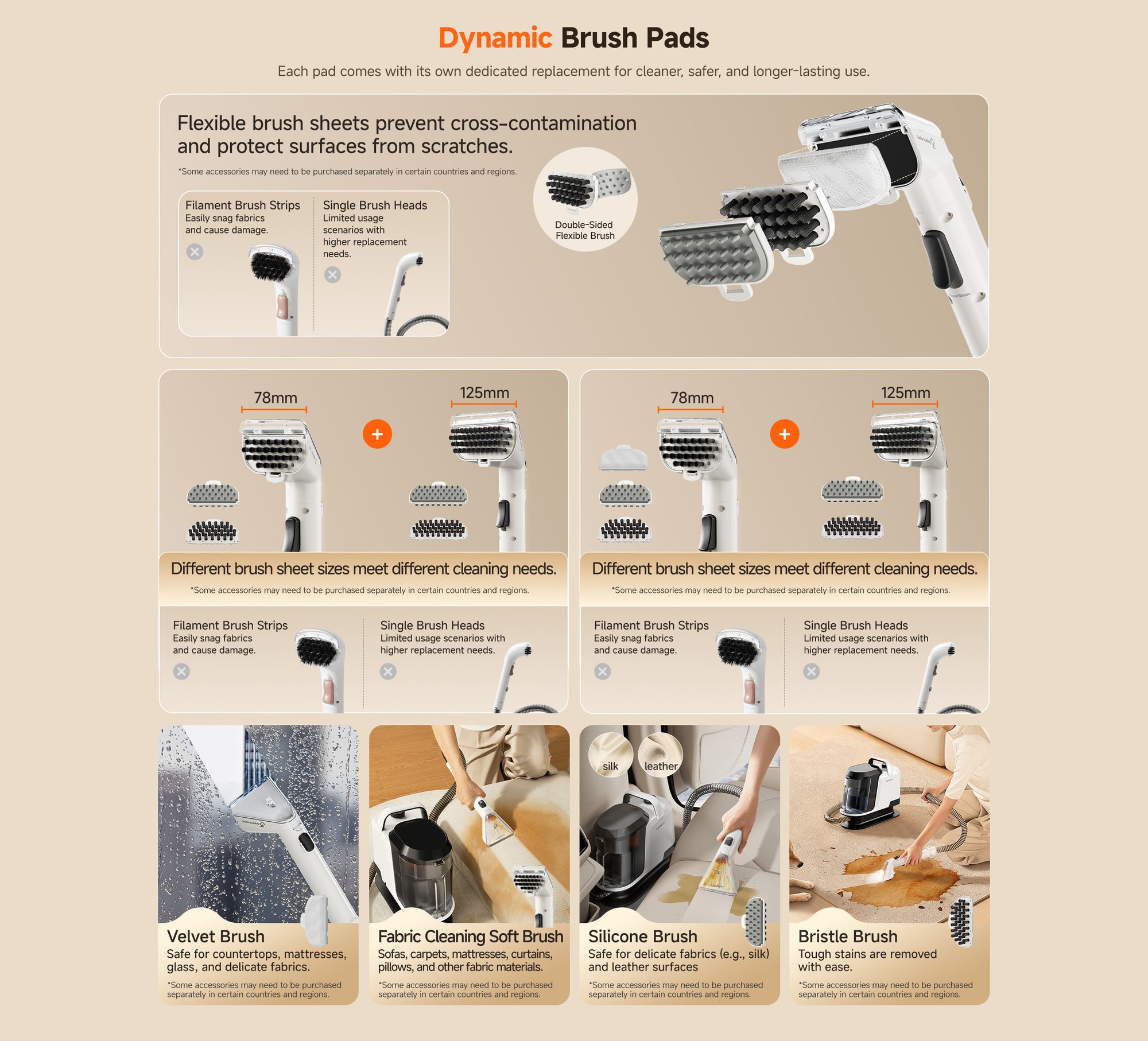 The Y100 Pro is designed for multi-surface spot cleaning, including sofas, carpets, mattresses, curtains, car seats, pillows, shoes, and even delicate fabrics or leather. With multiple interchangeable brushes, you can safely clean different materials without damage.