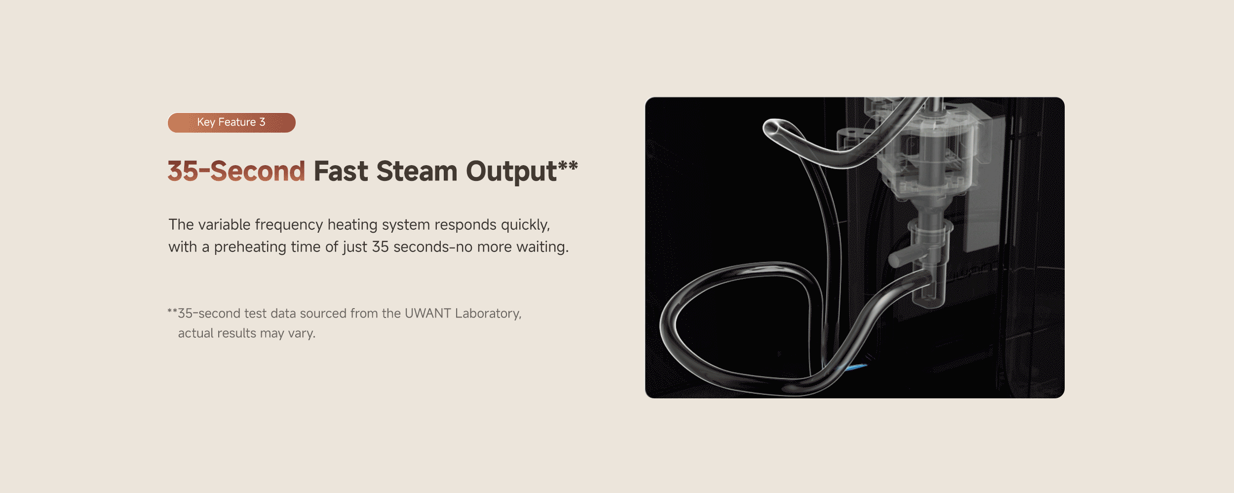 It takes only 35 seconds to produce high-temperature steam, allowing for quick and efficient cleaning whateer needed