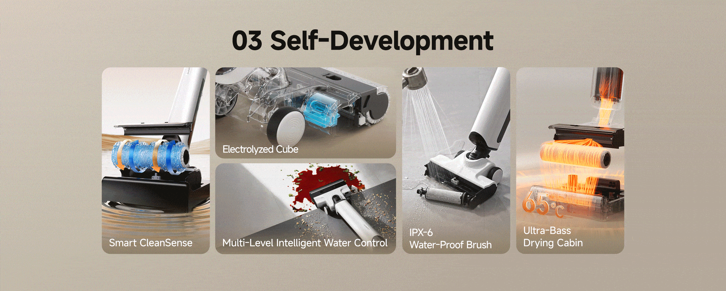The self-cleaning system of Uwant D500 cleans & dries the brush roller and pipes with a button press, using a deodorizing stick to prevent odors and maintain hygiene. It's ready to use again after completed.Β