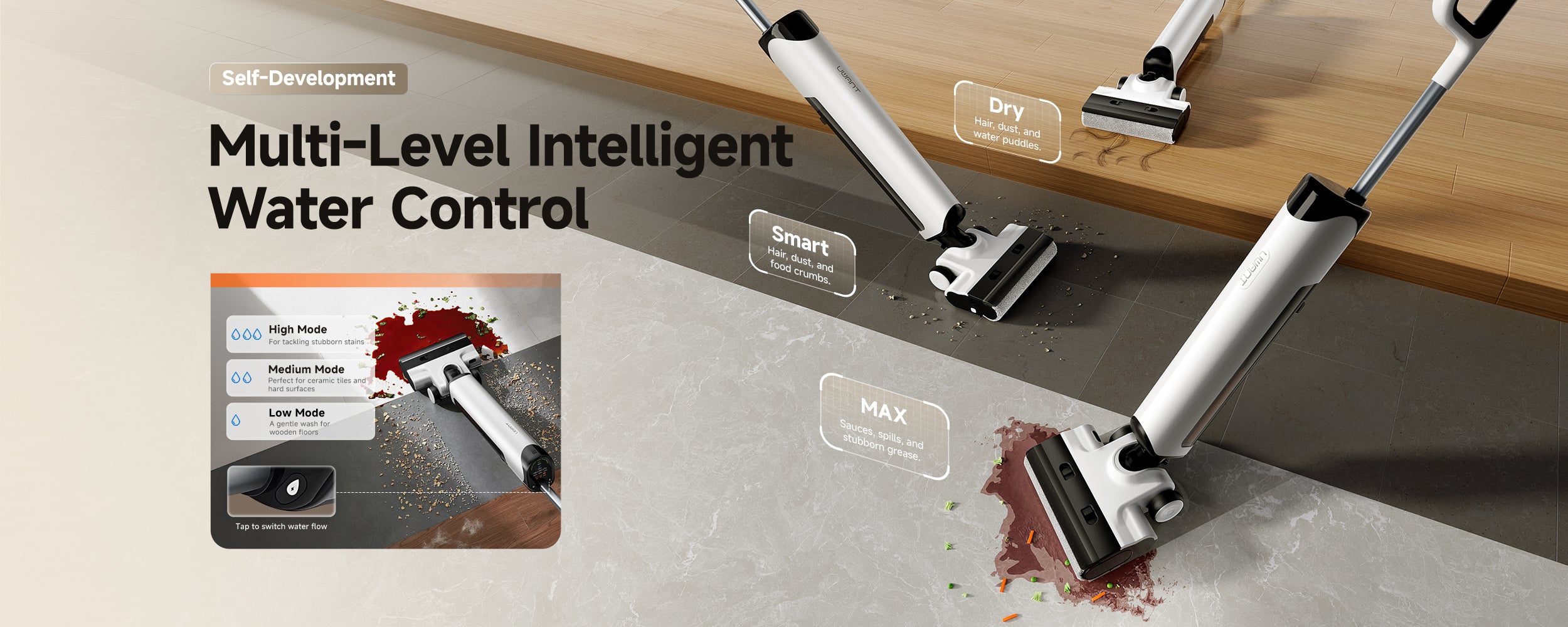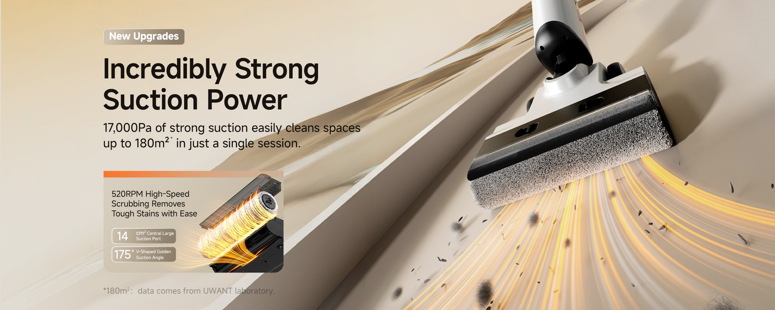 The Uwant D500 features strong suction and 3 cleaning modes: Smart Mode for mopping & vacuuming, Turbo Mode & Dry Mode for vacuuming various floor types.